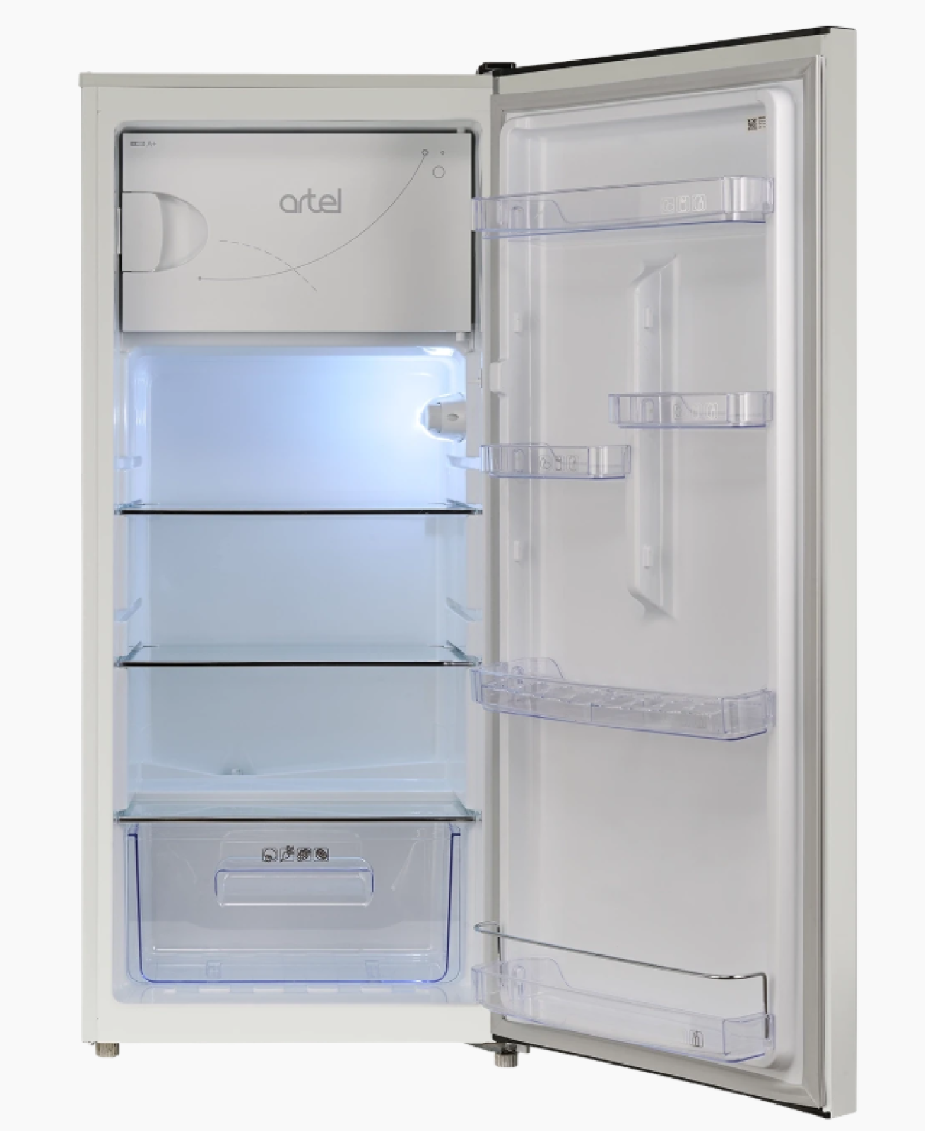 Объём холодильной камеры составляет 153 л. Внутри установлены 3 полки из калёного стекла. Дверь оборудована 3 средними и 2 маленькими барьер-полками для хранения продуктов. Для фруктов и овощей предусмотрен отдельный ящик. Система размораживания холодильной камеры — капельная, обеспечивающая удобство эксплуатации и лёгкую уборку.