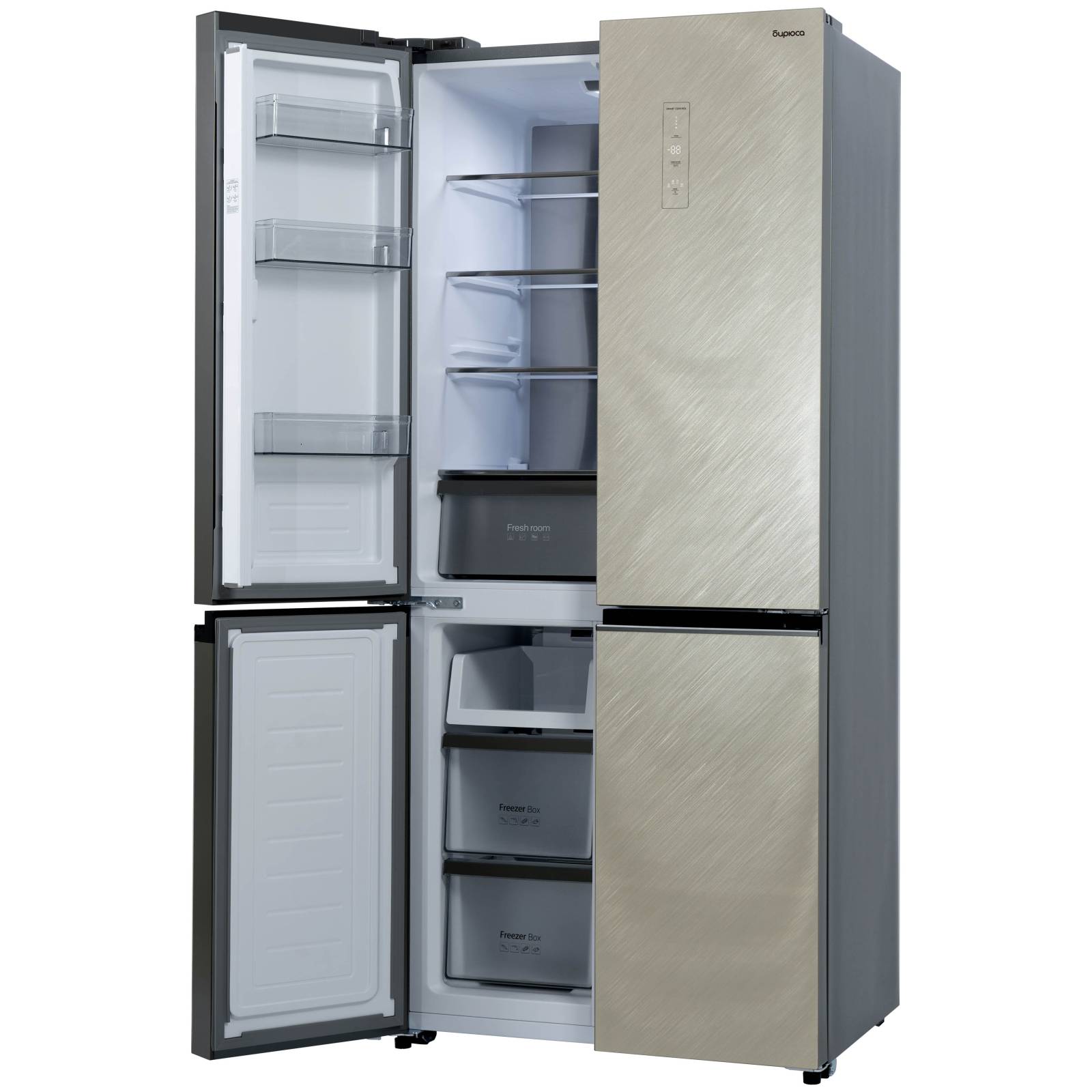 Многокамерный холодильник Бирюса CD 496 TGG (496 л) с нижней морозильной камерой — стильный и вместительный выбор для большой семьи: общий объём 496 л, инверторный компрессор (Dual Inverter: компрессор + вентилятор для тишины и экономии), Full No Frost в обеих камерах, система MultiFlow (равномерное распределение воздуха), зона свежести, электронное управление с LED-дисплеем, деодорирующий фильтр Nano Ag+, текстурированное бежевое стекло дверей (без отпечатков пальцев и царапин).