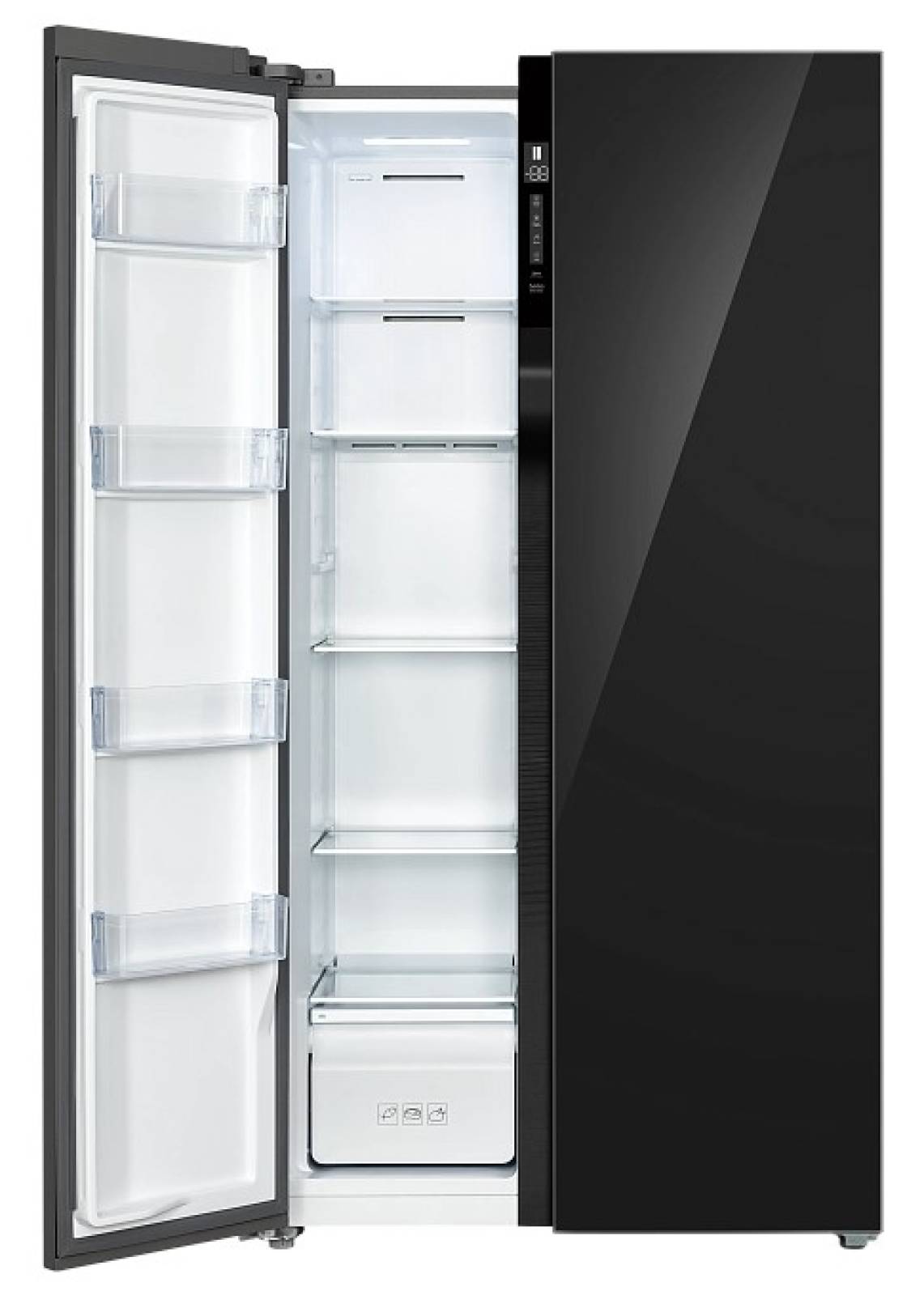 Двухдверный холодильник TCL P520SBBG сочетает современный дизайн и функциональность. Корпус из черного стекла придает стильный вид, а компактные габариты (Ш 92 см × В 175 см × Г 63 см) позволяют органично вписать модель в любую кухню.