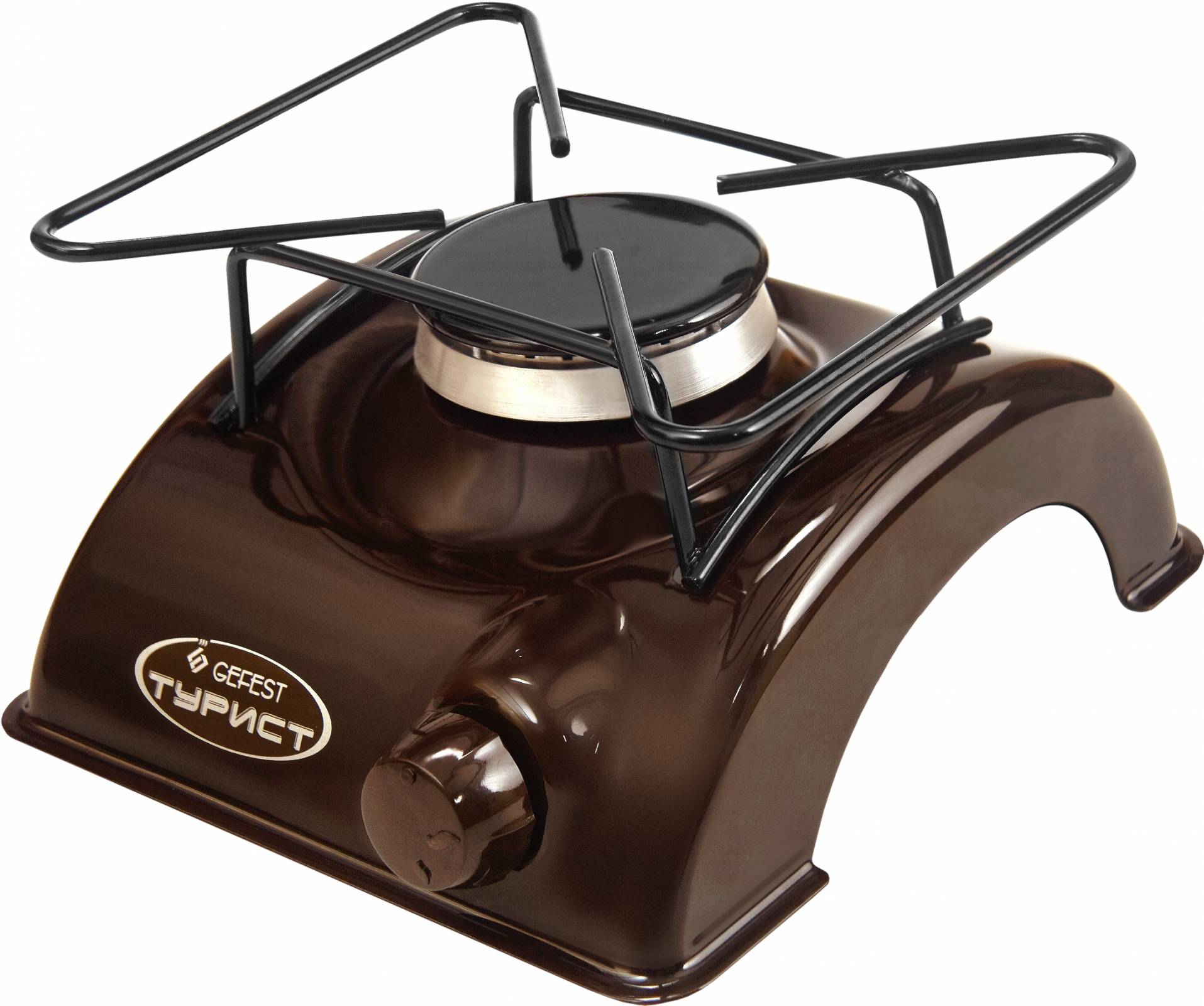 Небольшая газовая горелка шириной 17 см и весом чуть более килограмма. Коричневый цвет, плитка покрыта жаропрочной эмалью, конфорка надежно защищена стальной решеткой. Мощность конфорки в пределах 1,5 кВт, интенсивность горения регулируется поворотной ручкой, есть фиксированное положение минимального горения. Легкая и надежная, использование не вызывает затруднений.