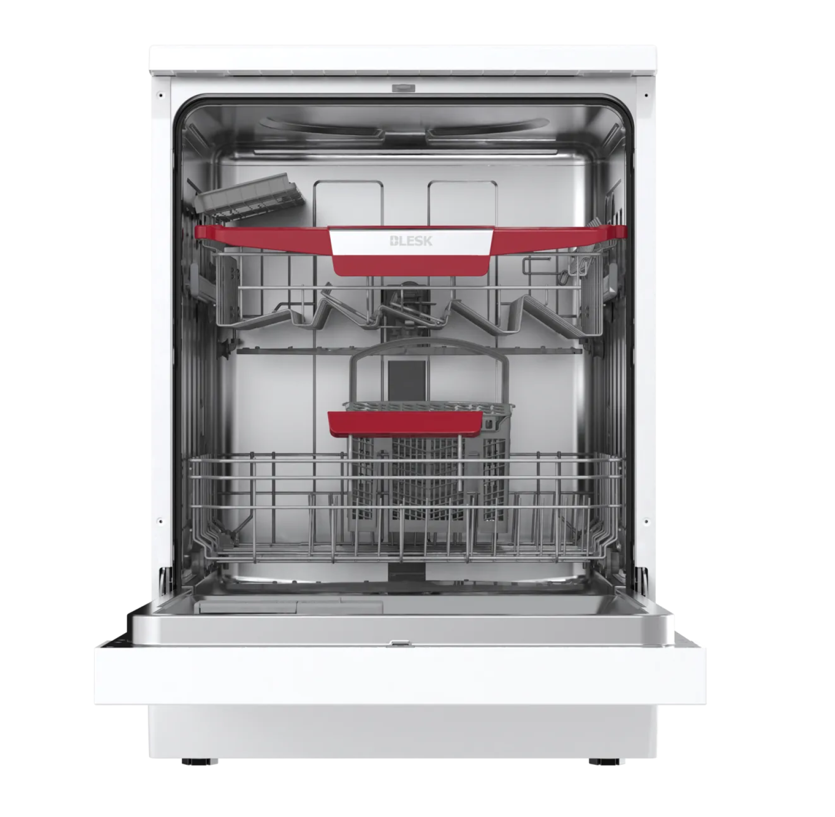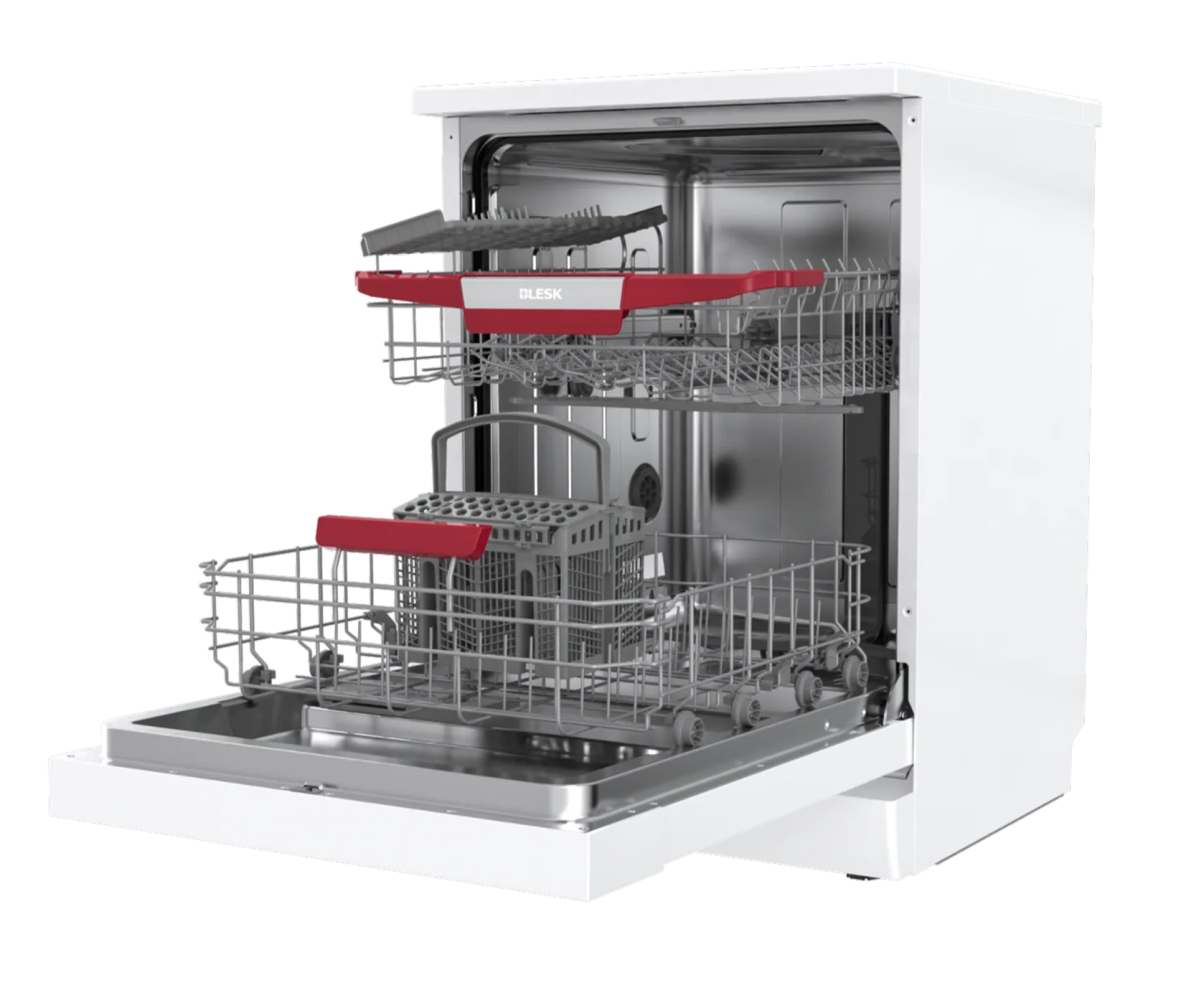 Две корзины с красными ручками формы V обеспечивают удобную загрузку посуды разного размера.