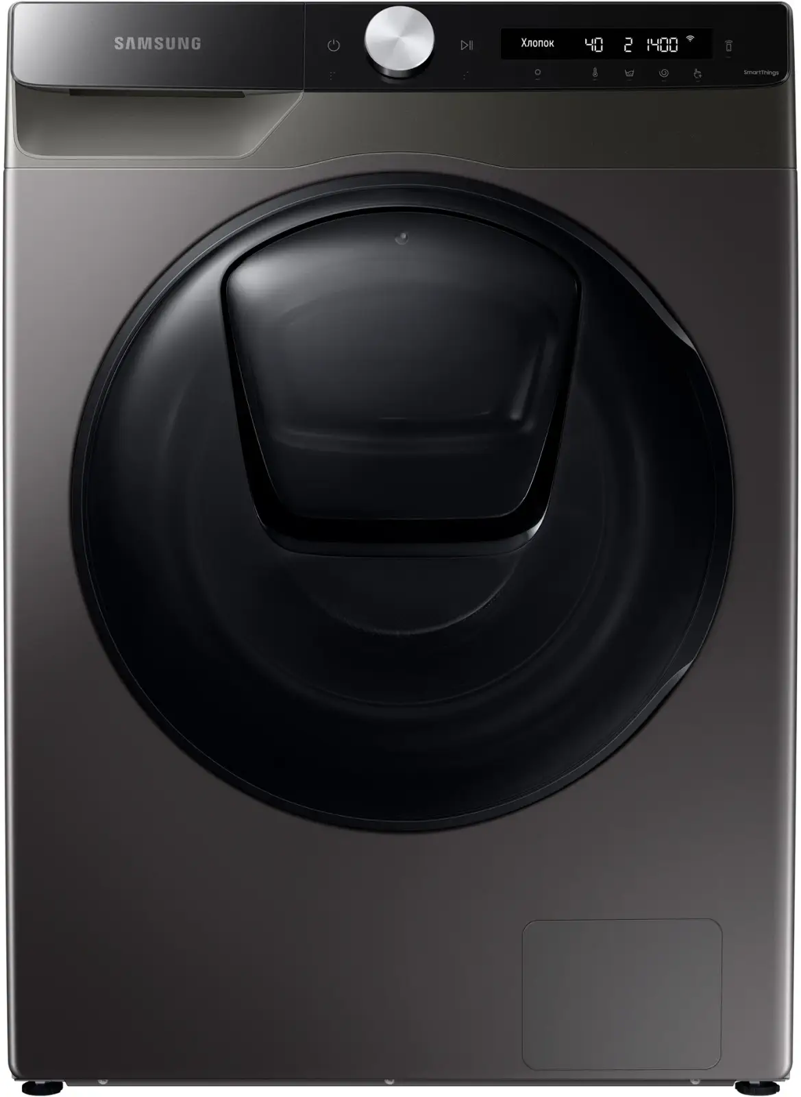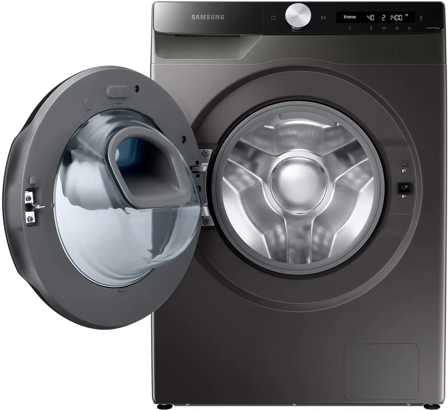 Стиральная машина SAMSUNG WD80T554CBX/LD 8 кг + 6 кг Стирально-сушильная фронтальная машина с загрузкой 8 кг (стирка) + 6 кг (сушка), инверторным двигателем Digital Inverter (гарантия 10 лет), отжимом 1400 об/мин, технологией EcoBubble, паровой обработкой Hygiene Steam, функцией AddWash (дополнительная дверца для дозагрузки), Wi-Fi (SmartThings) и 14–17 программами стирки/сушки (включая Super Speed, Air Wash, Drum Clean+). Цвет графит / тёмно-серый (Graphite), габариты 85 × 60 × 60 см, вес около 68 кг.