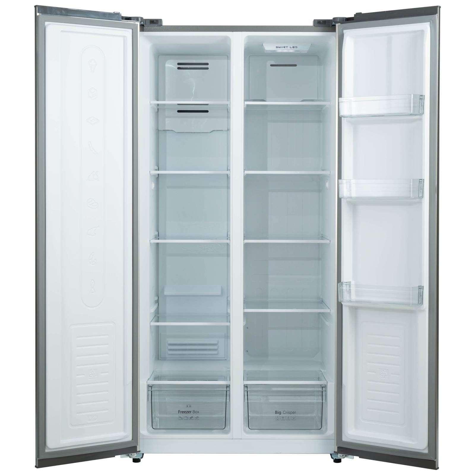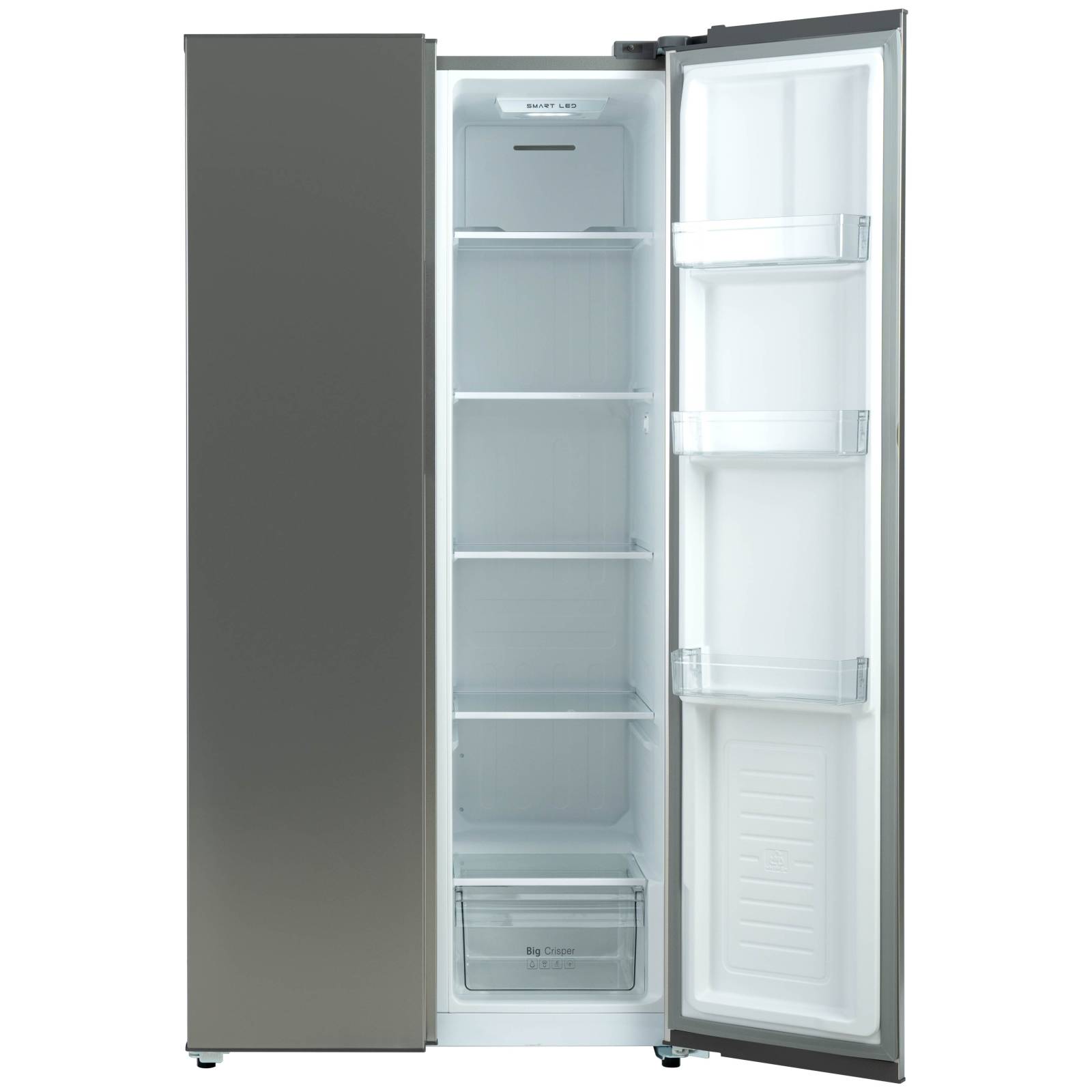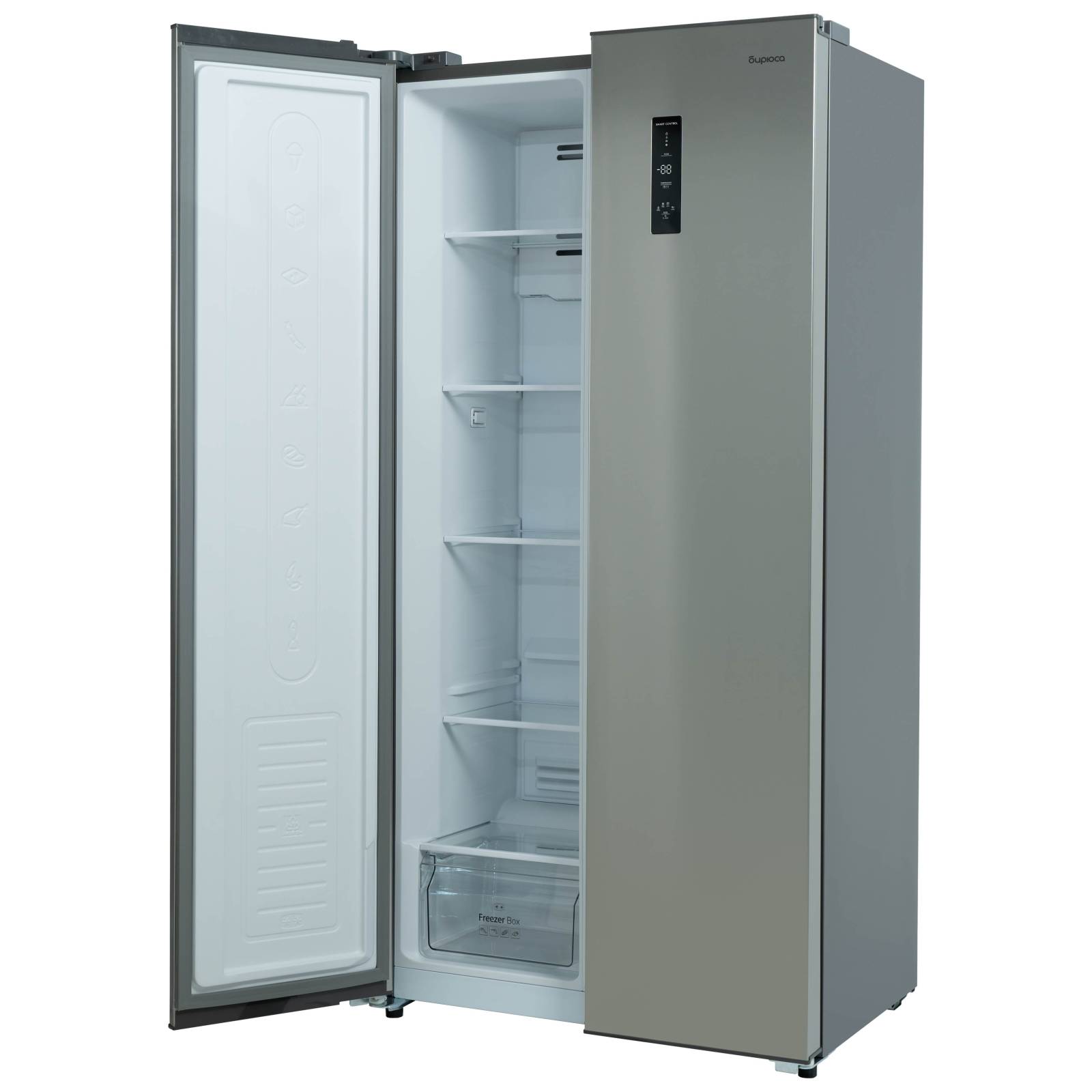 Side-by-Side холодильник Бирюса SBS 400 I (400 л) в цвете нержавеющая сталь — стильный и практичный выбор для средней семьи: общий объём 400 л (холодильная камера 232 л, морозильная 168 л), Full No Frost в обеих камерах (без разморозки), система Multi Air Flow (равномерное распределение воздуха), LED-освещение, электронное управление, деодорирующий фильтр Nano Ag+ (удаляет запахи), сенсорный дисплей на двери, компактные габариты для удобной установки.