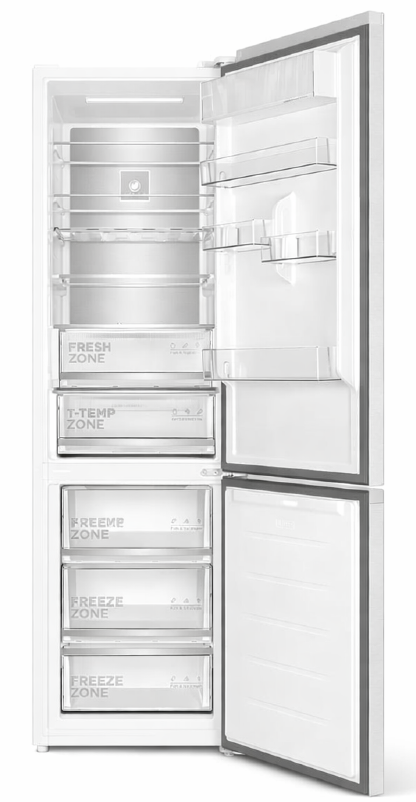 Двухкамерный холодильник TCL C387BFW сочетает современный дизайн, высокую энергоэффективность и удобные технологии хранения продуктов. Благодаря системе Total No Frost холодильник не требует ручной разморозки, а равномерное распределение холодного воздуха помогает дольше сохранять свежесть продуктов.