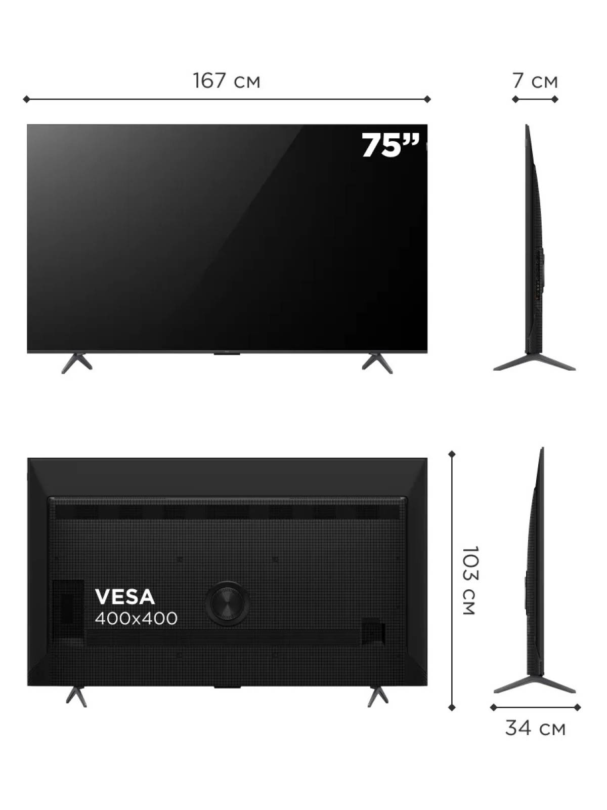Диагональ экрана: 75''