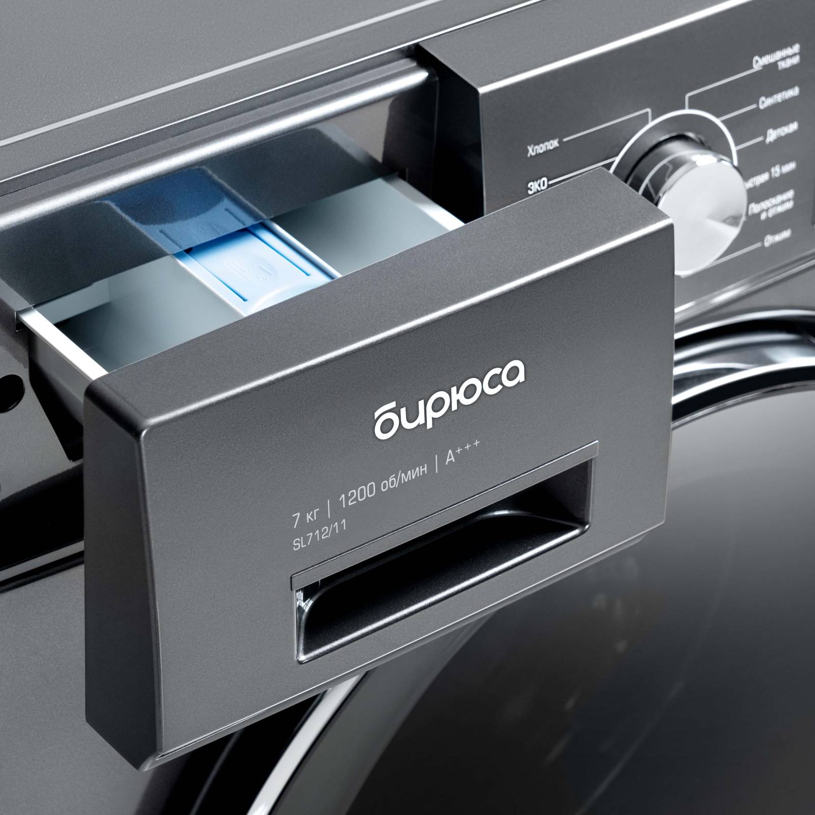 Вместительность и производительность: Не смотря на компактные размеры, стиральная машина Бирюса WM-SL712/11 S обладает внушительной загрузочной емкостью до 7 кг белья. Это делает ее идеальным решением для среднестатистической семьи, обеспечивая эффективную стирку большого объема белья за один цикл.