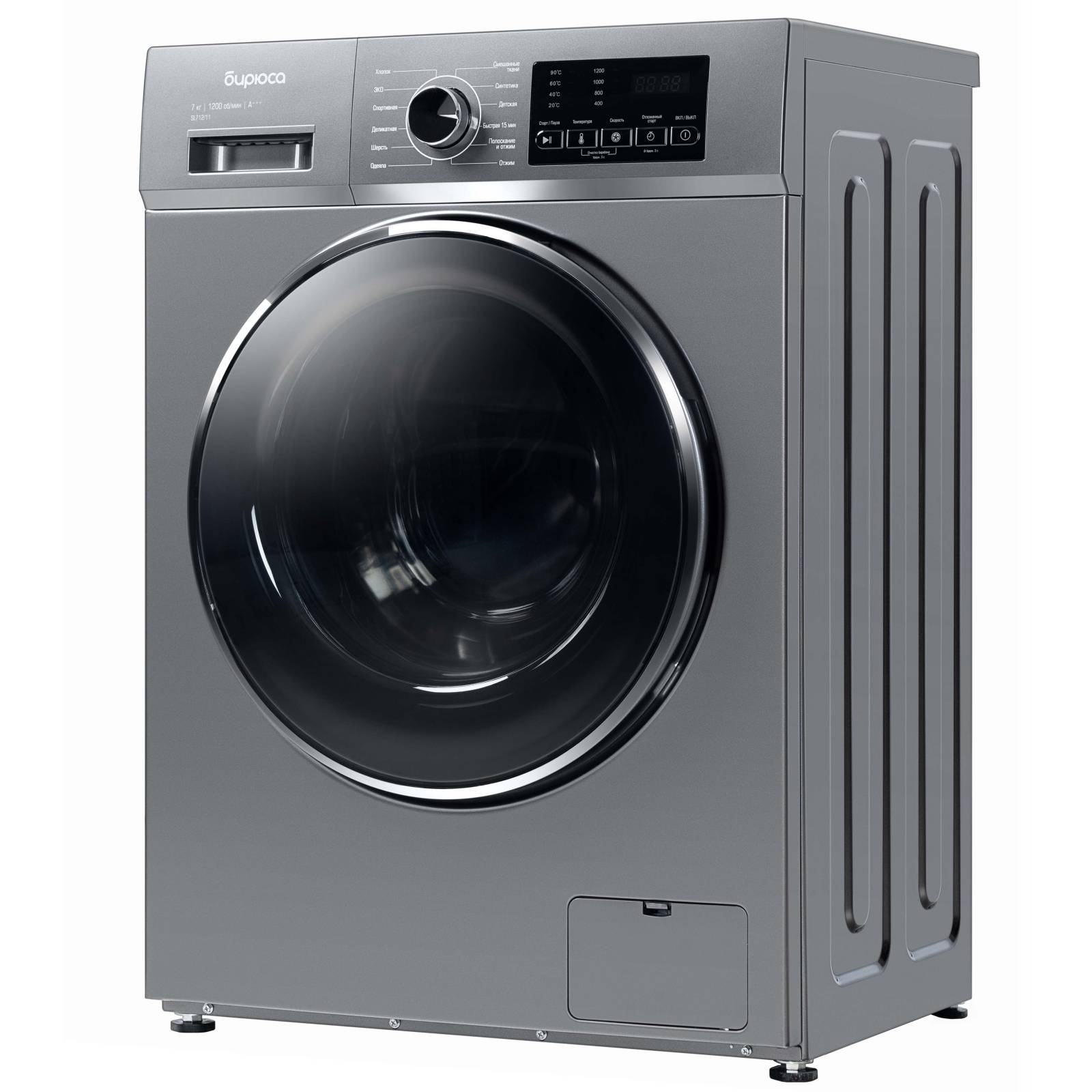 Дизайн и компактность: Стиральная машина Бирюса WM-SL712/11 S сочетает в себе элегантный дизайн и компактные габариты. Ее хромированный металлический корпус придает вашей кухне или прачечной современный и стильный вид. С удобными размерами 85x59,5х48см она легко интегрируется в любое помещение, экономя пространство.