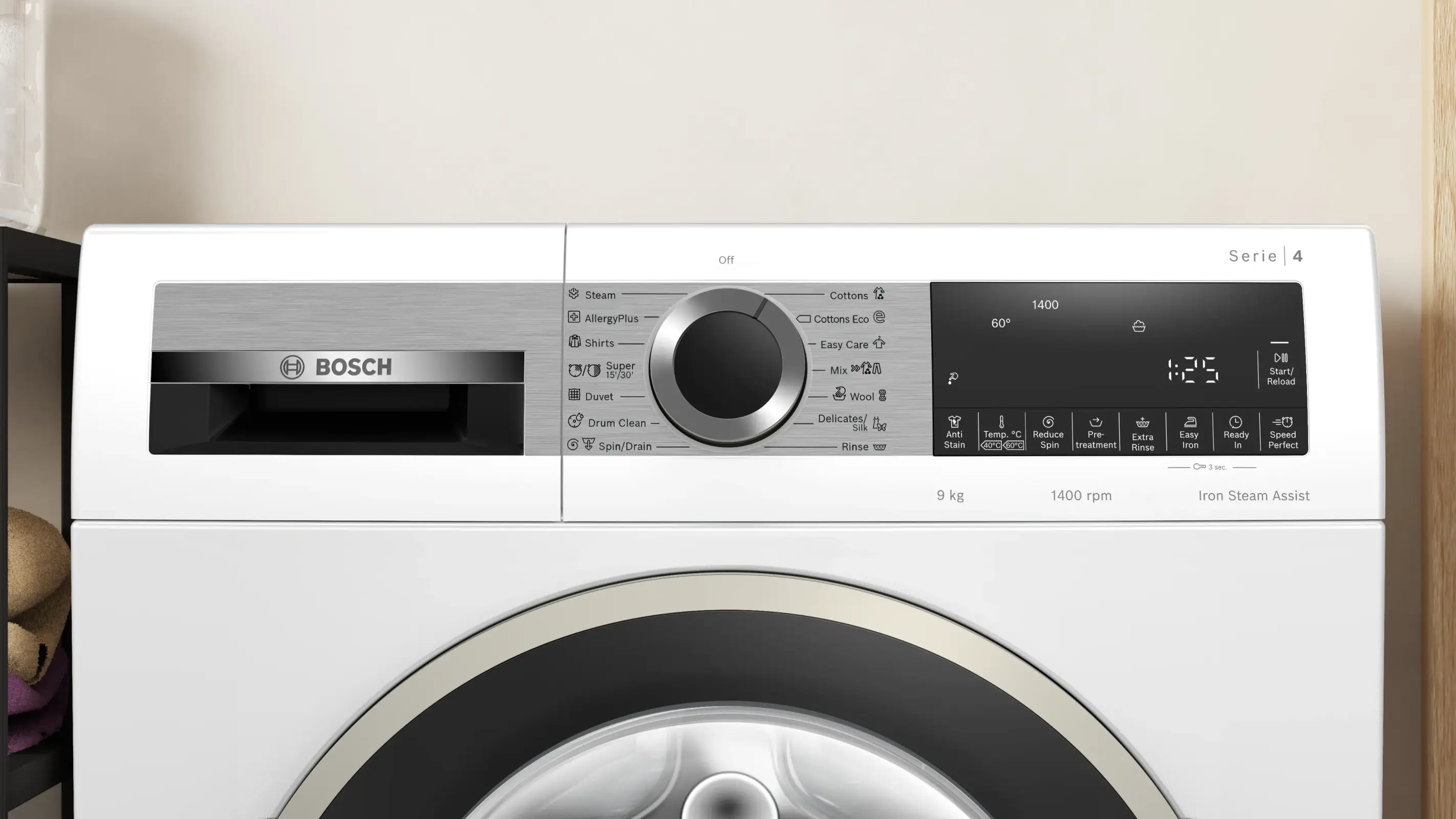 SpeedPerfect, Iron Assist (пар), VarioDrum, ActiveWater, Reload (дозагрузка), DrumClean, контроль пены и дисбаланса |